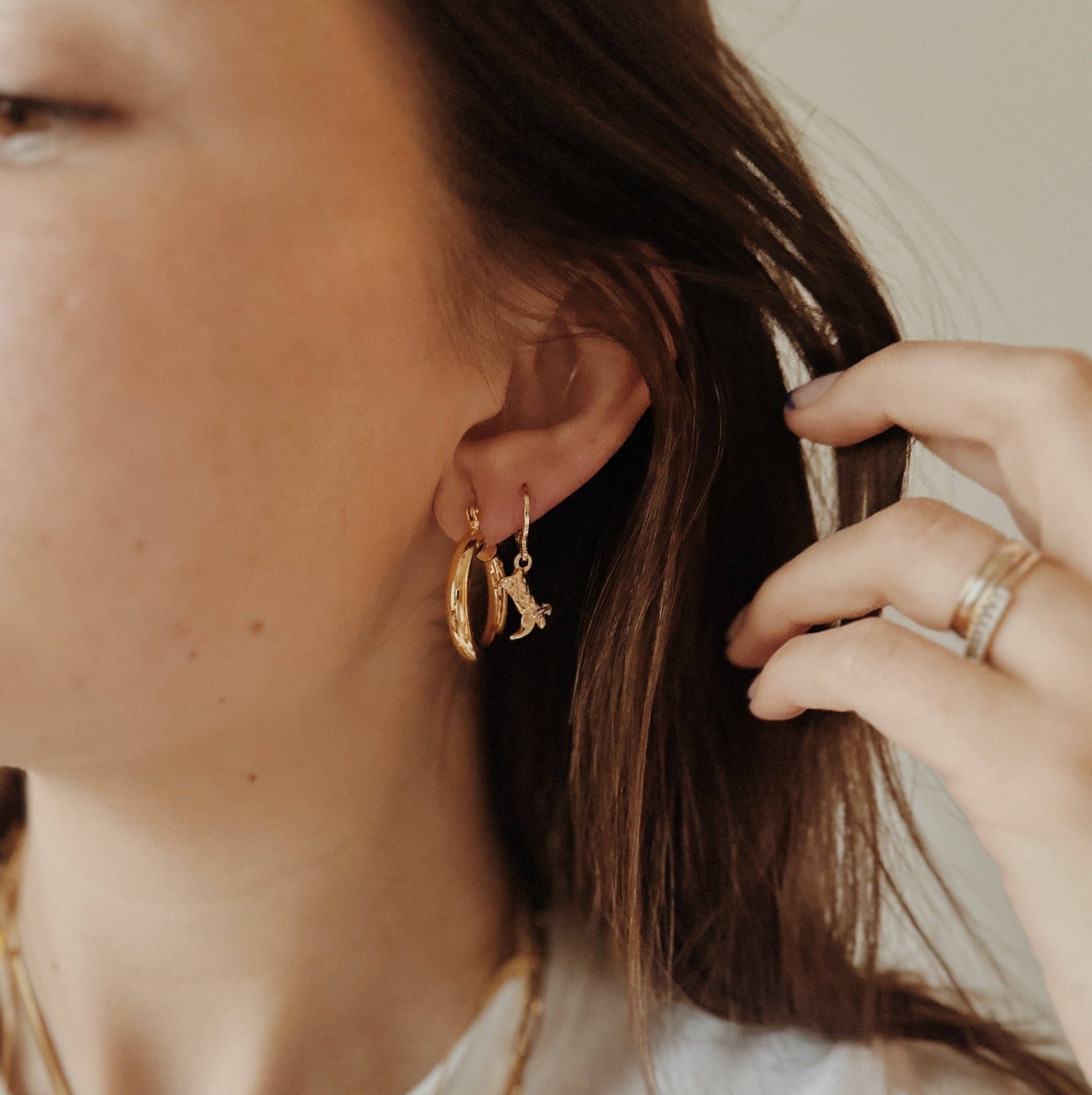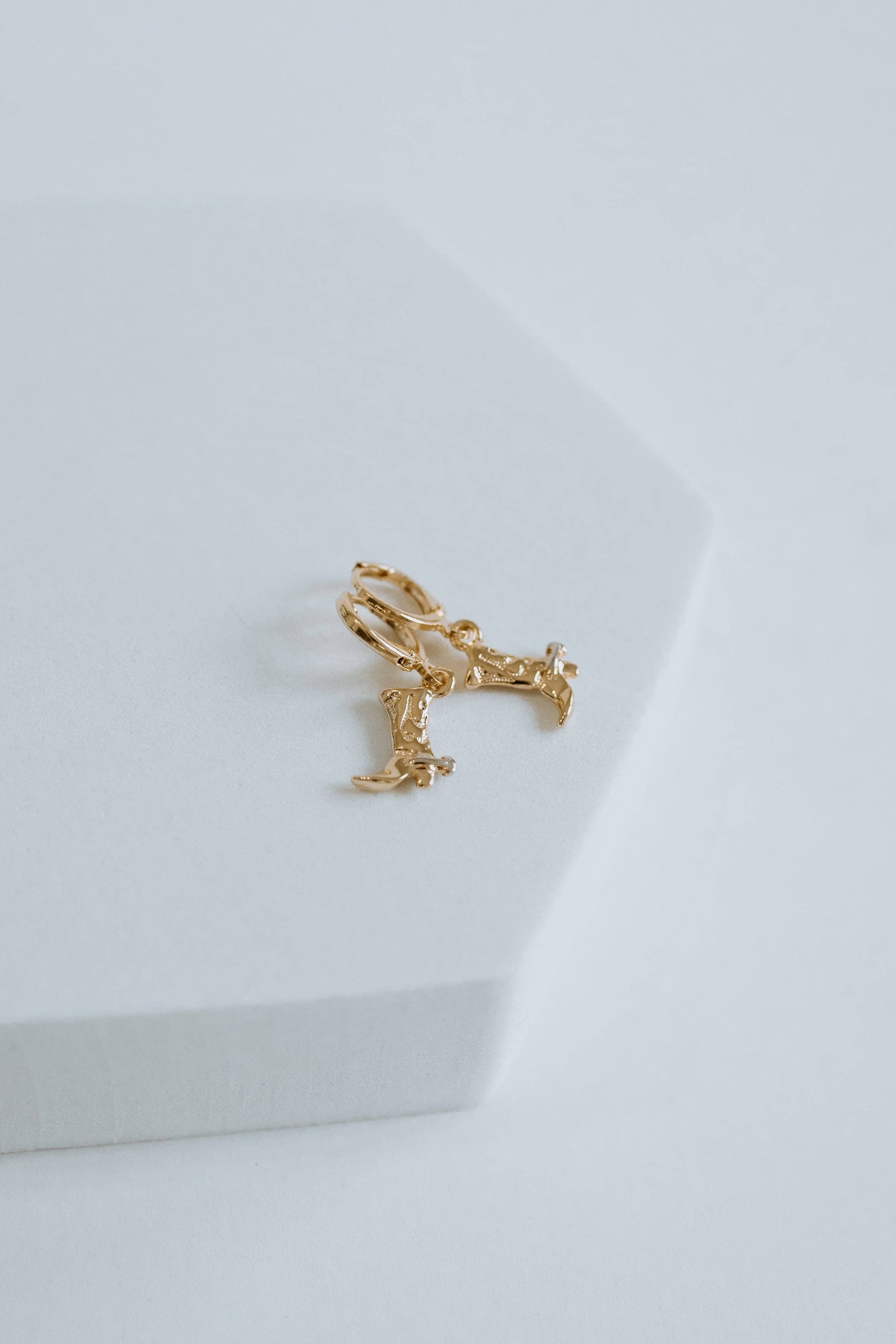 Kick up your heels and add some western flair with these fun cowboy-inspired hoop earrings. Designed for everyday wear, these hoops bring a playful touch of yeehaw to any outfit. With their bold yet dainty design, these earrings let you embrace your inner cowboy or cowgirl with style and ease. The Details - Material: 18k Gold Filled, Offers a rich gold tone that’s built to last, with a high-quality finish that resists tarnishing. - Size: 10.5mm (diameter) x 1.5mm (width) - Boot Size: 10mm x 11.5mm - Hypoallergenic: Lead and nickel-free, perfect for sensitive ears. - Tarnish & Water Resistant