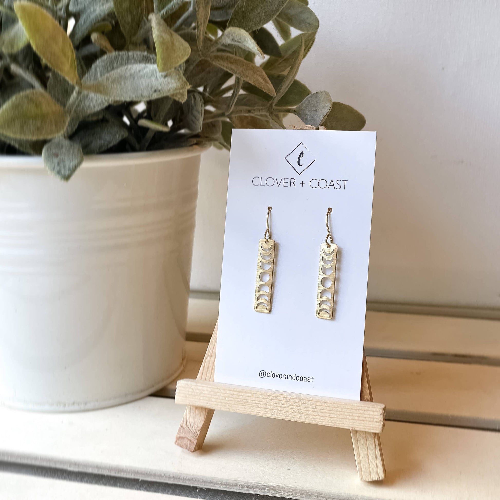 Dive into the celestial charm of our Brass Moonphase Earrings. These dangle earrings from Clover + Coast Designs are a beautiful embodiment of our brand's ethos - creating handcrafted statement pieces for every woman. Inspired by the phases of the moon, these earrings are meticulously designed using distressed brass. Whether you're into minimalistic styles or bold, edgy looks, these earrings are sure to add a trendy touch to your ensemble. Made in Ladysmith, British Columbia with locally sourced materials.