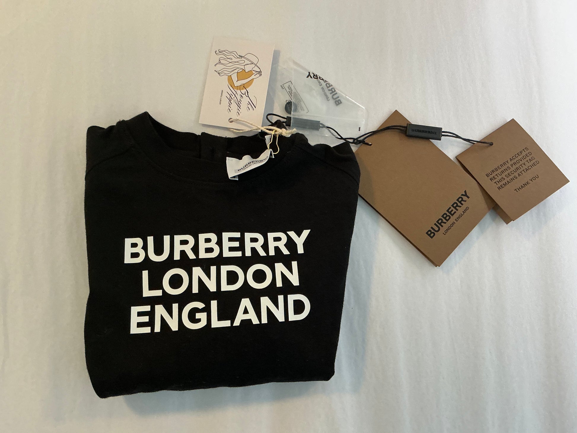 Black long sleeve 2Y sized shirt with Burberry London England print on front.