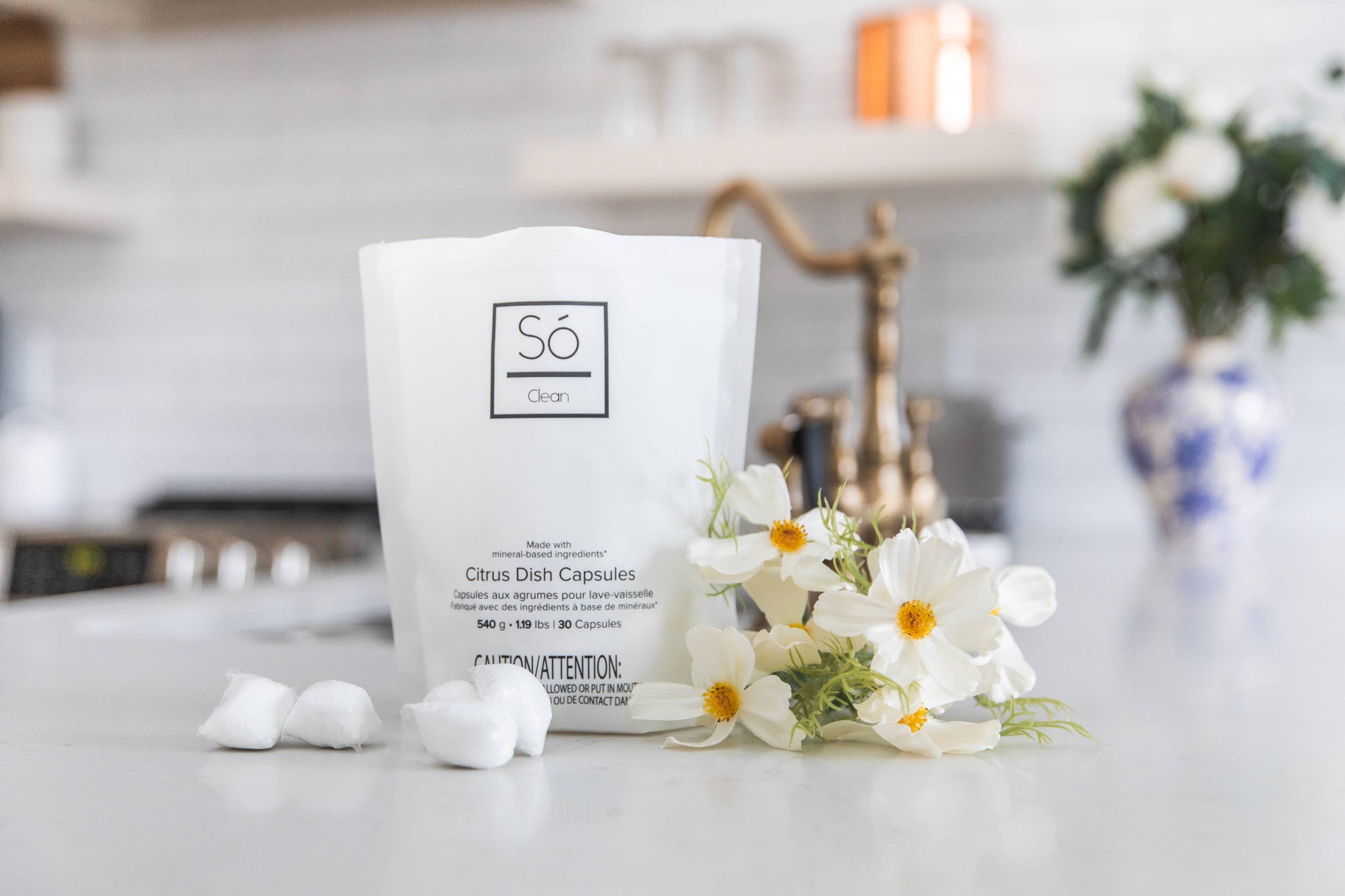 Só Clean - Citrus Dish Capsules are easy to use and can tackle even your dirtiest and greasiest dishes naturally Só you can focus on more important things, like that book you’ve been meaning to finish! Biodegradable, septic tank and grey water safe, phosphate and dye free, these citrus dish capsules use mineral and plant-based cleansing agents and are prepacked into single use capsules that you can just set and forget. * Biodegradable * Earth Friendly * Dye-Free * Septic Tank + Grey Water Safe * Every product in the Só Clean line is made in Canada with mineral and plant-based ingredients that are safe to use for you, your loved ones and Mother Earth too. Ingredients: Sodium Chloride, Sodium Carbonate, Citric Acid, Sodium Sulphate, Sodium Carbonate Peroixde, Sodium Metasilicate, C12-14 Pareth-11, Sodium Silicate, Subtilisin Enzyme Blend, Natural Fragrance. Polyvinyl Alcohol (water soluble single pack packaging). One Size – 600 g/1.32 lb (30 Capsules)
