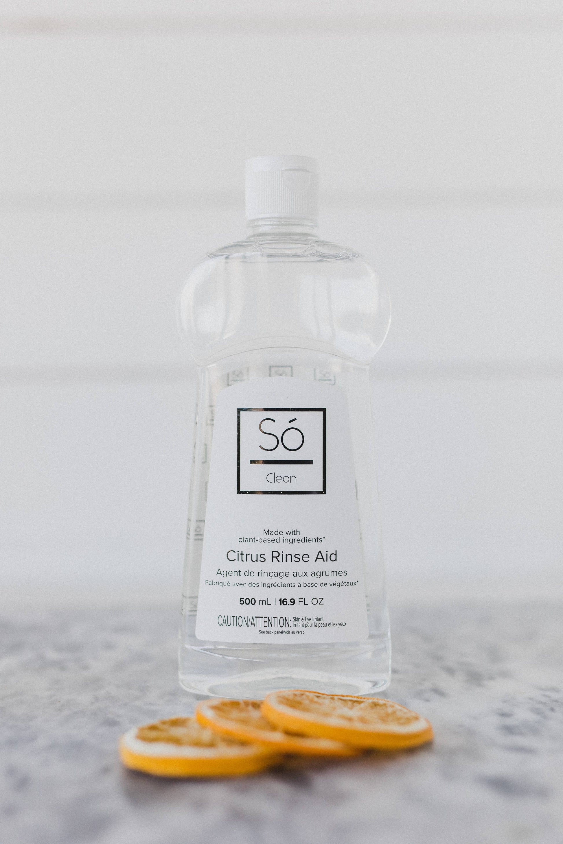 Só Clean - Citrus Rinse Aid is as great for the environment as it is for your automatic dishwasher and will help make your clean dishes shine brighter than ever. Keep your glassware and cutlery free from water spots, mineral deposits and unwanted residue without the use of harsh chemicals. * Biodegradable * Vegan Friendly * Dye-Free * Septic Tank + Grey Water Safe * Every product in the Só Clean line is made in Canada with plant-based ingredients that are safe to use for you, your loved ones and Mother Earth too. Ingredients: Aqua, C12-14 Pareth-11, Citric Acid, Natural Fragrance. 500ml / 16.9 fl oz