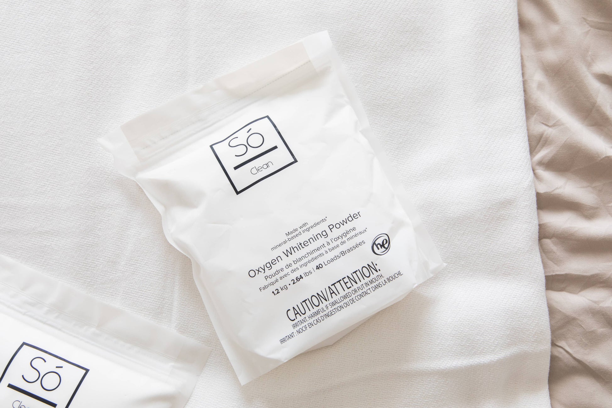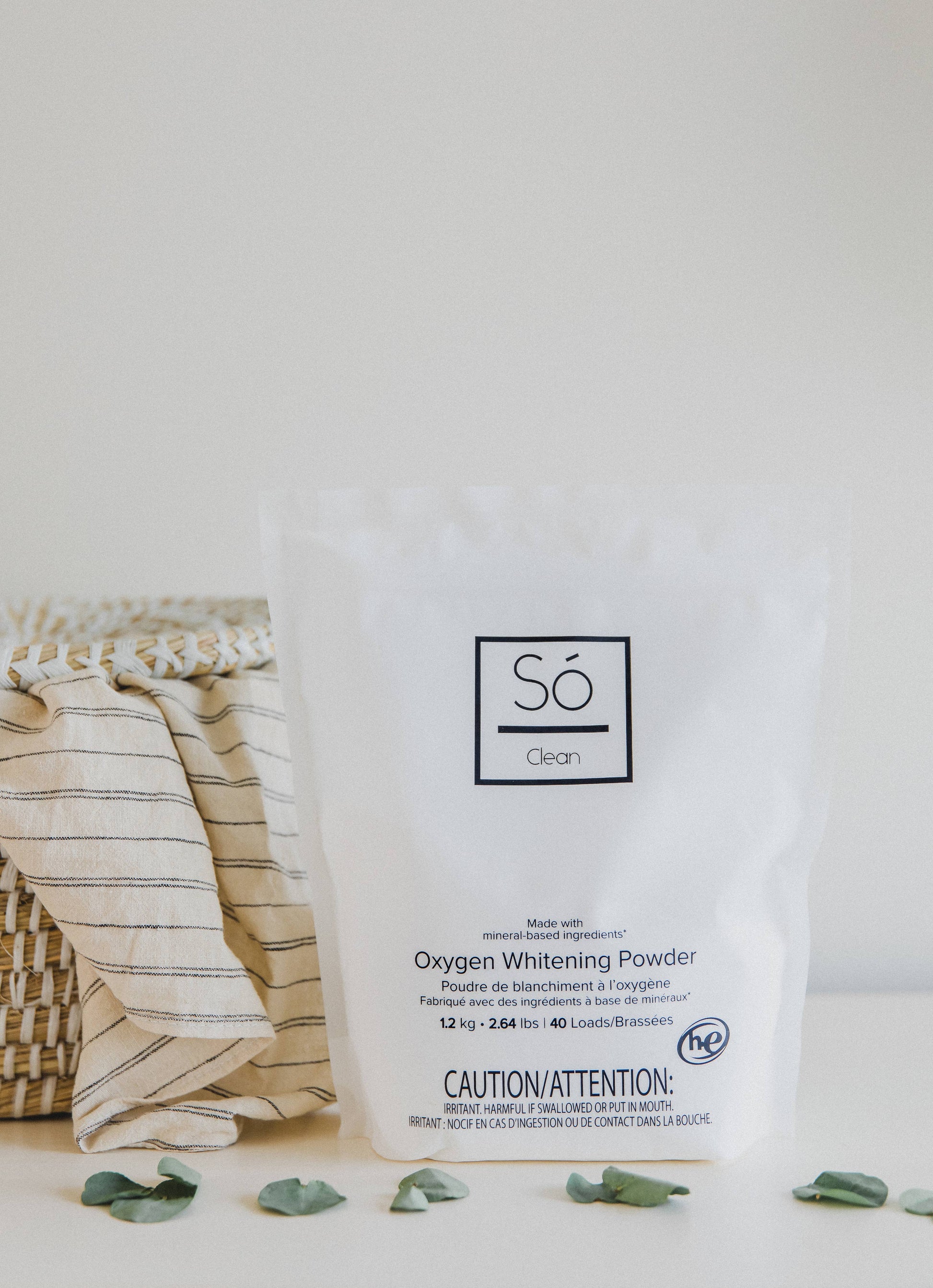 Só Clean - Oxygen Whitening Powder is made with only 3 mineral based ingredients and naturally fights tough stains on clothing and surfaces without the use of chlorine bleach or other harsh chemicals. Biodegradable, septic tank and grey water safe, unscented, phosphate and dye free, this mineral-based oxygen whitening powder can be used as a laundry booster to keep your next load of whites white and your brights bright or applied to that stubborn red wine stain to get it out pronto. * Biodegradable * Phosphate-Free * Dye-Free * Scent-Free * Septic Tank + Grey Water Safe * Every product in the Só Clean line is made in Canada with mineral and plant-based ingredients that are safe to use for you, your loved ones and Mother Earth too. Ingredients: Sodium Carbonate Peroxoide, Sodium Carbonate, Sodium Sulfate. One Size -1.2 kg/2.64 lbs 40 Loads