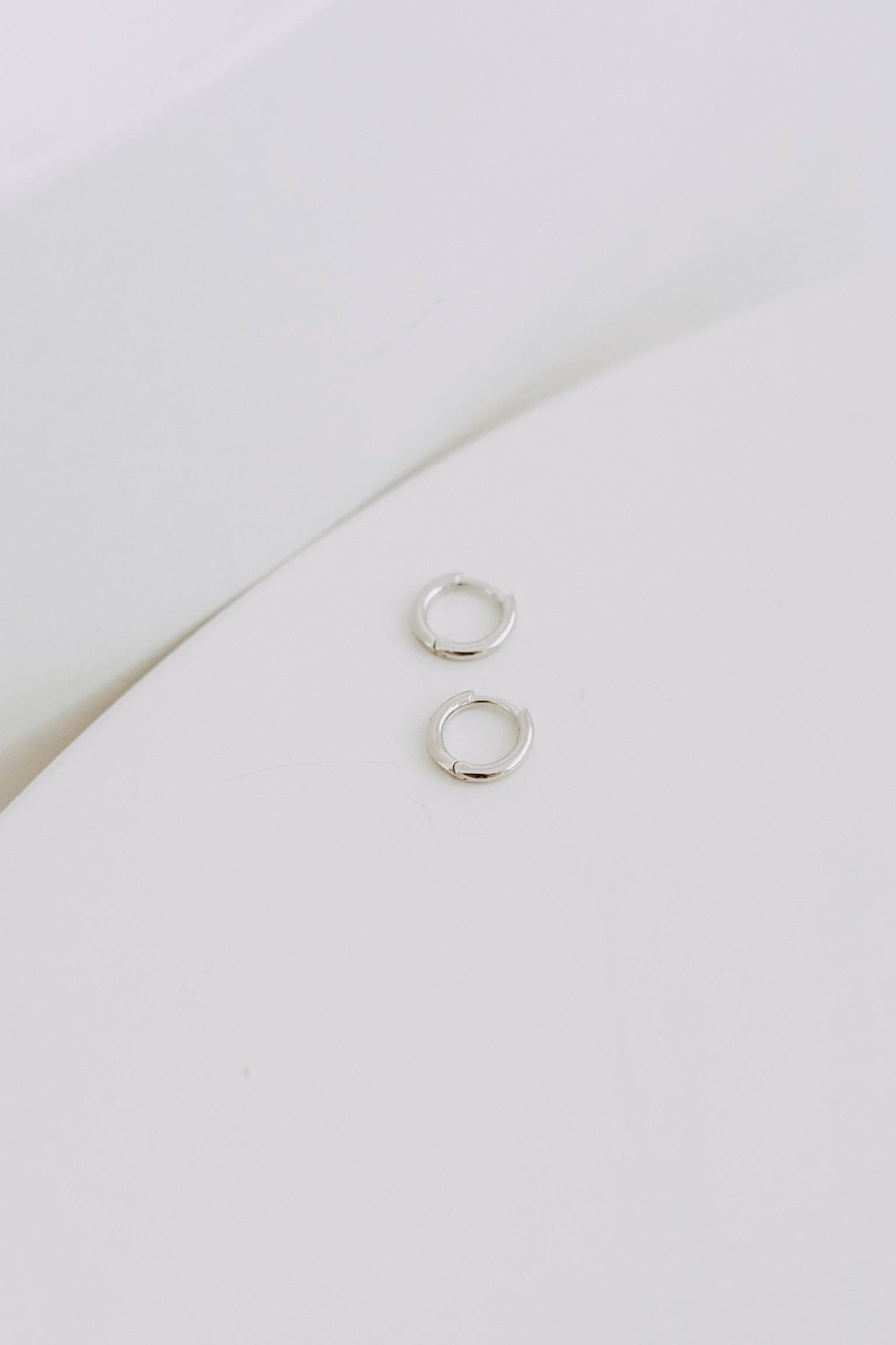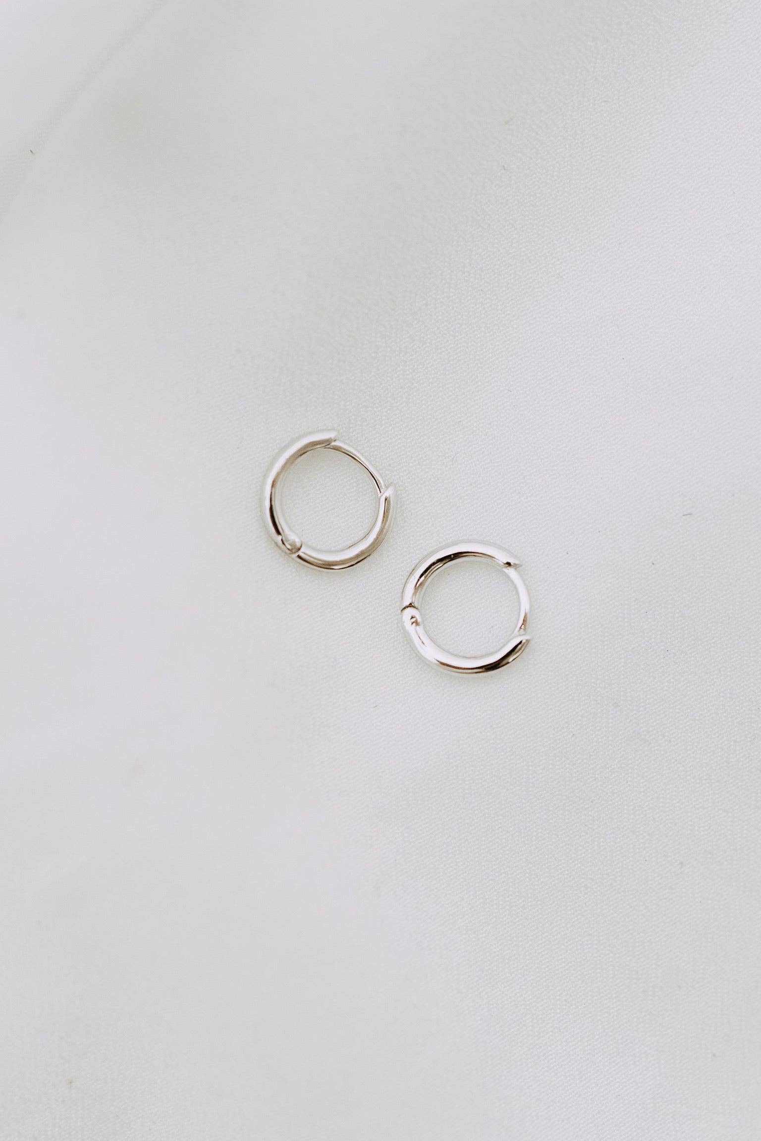 Our Simple Huggies —a pair of sterling silver round hoop earrings. Available in two sizes, 12mm and 10mm, these huggie hoops offer a minimalistic design that hugs the earlobe for a polished yet understated finish. Crafted from high-quality sterling silver, the Simple Huggies are perfect for everyday wear, providing a subtle touch of style without overwhelming your outfit.