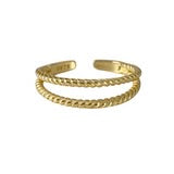 The Double Twist Ring features two intertwined bands, elegantly twisting around each other to create a unique and dynamic design