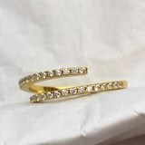 The Pave Double Wrap Adjustable Gold Ring combines elegance with versatility. Featuring two bands encrusted with sparkling pavé stones, this adjustable ring wraps around your finger for a bold, modern look.