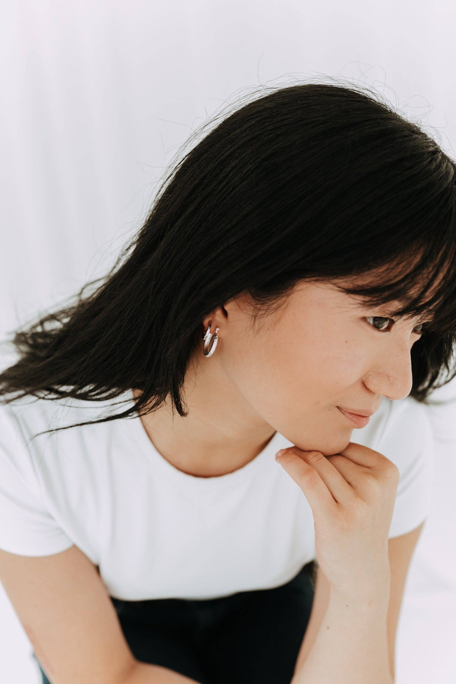Understated elegance with a subtle edge. The Etch Hoops feature a fine engraved texture that catches the light just right — a modern take on a timeless silver classic. Their delicate pattern adds a hint of shimmer while keeping things minimal and refined.
