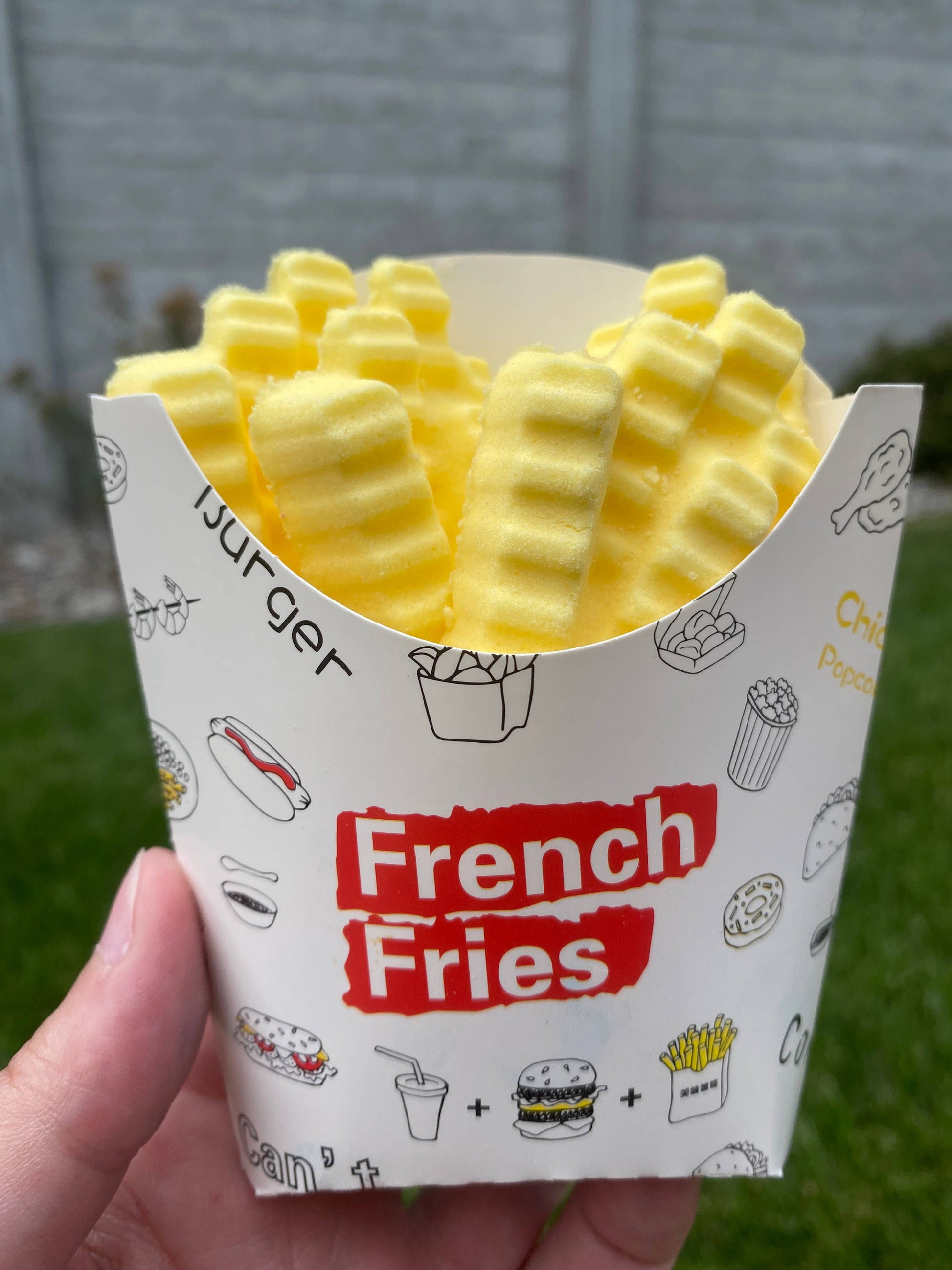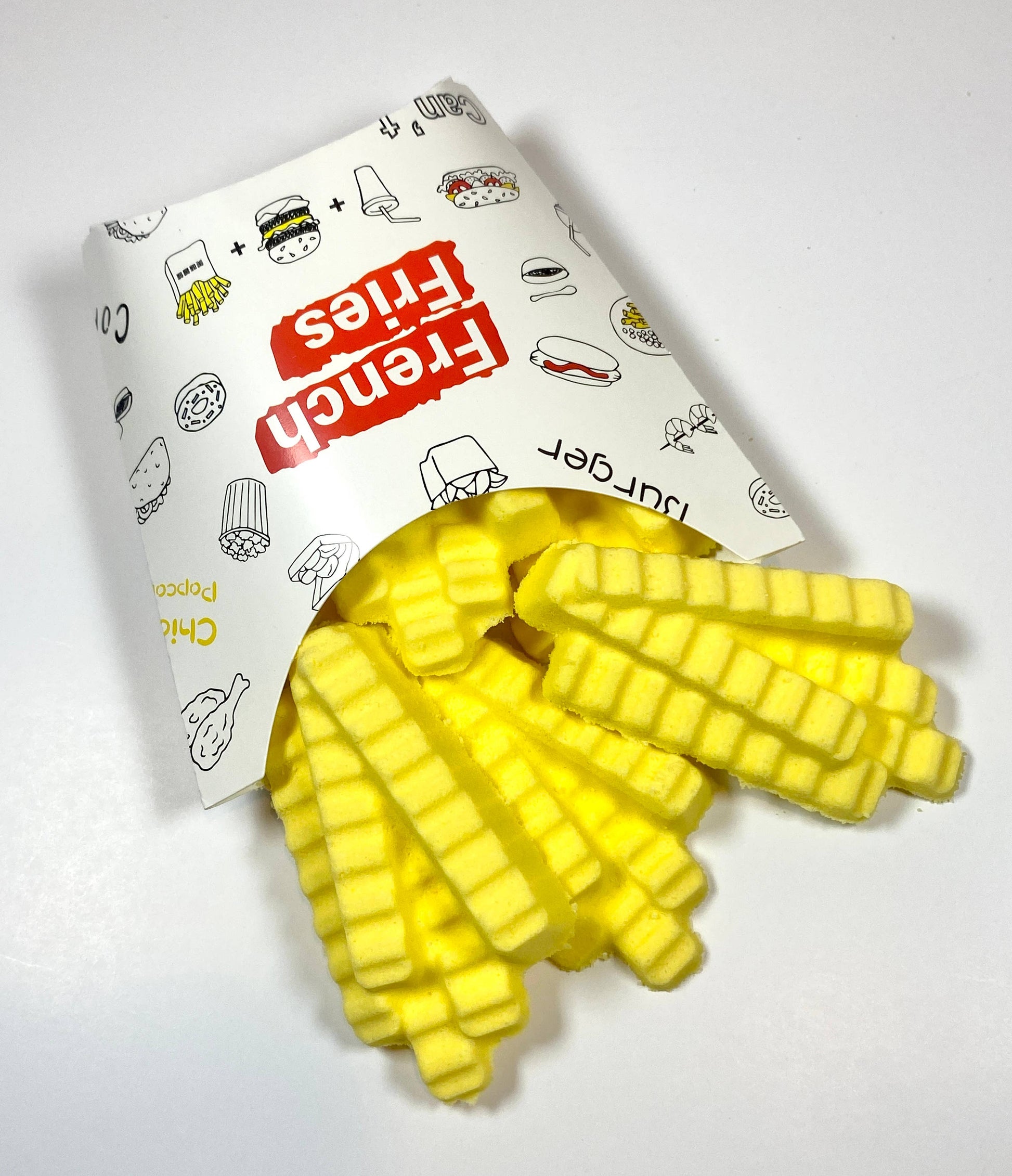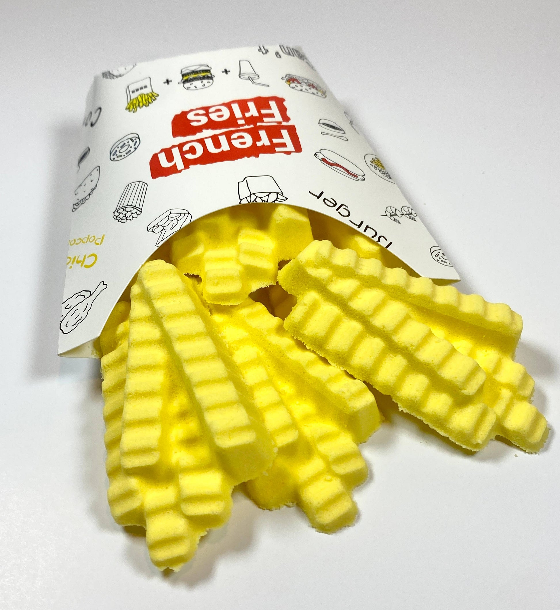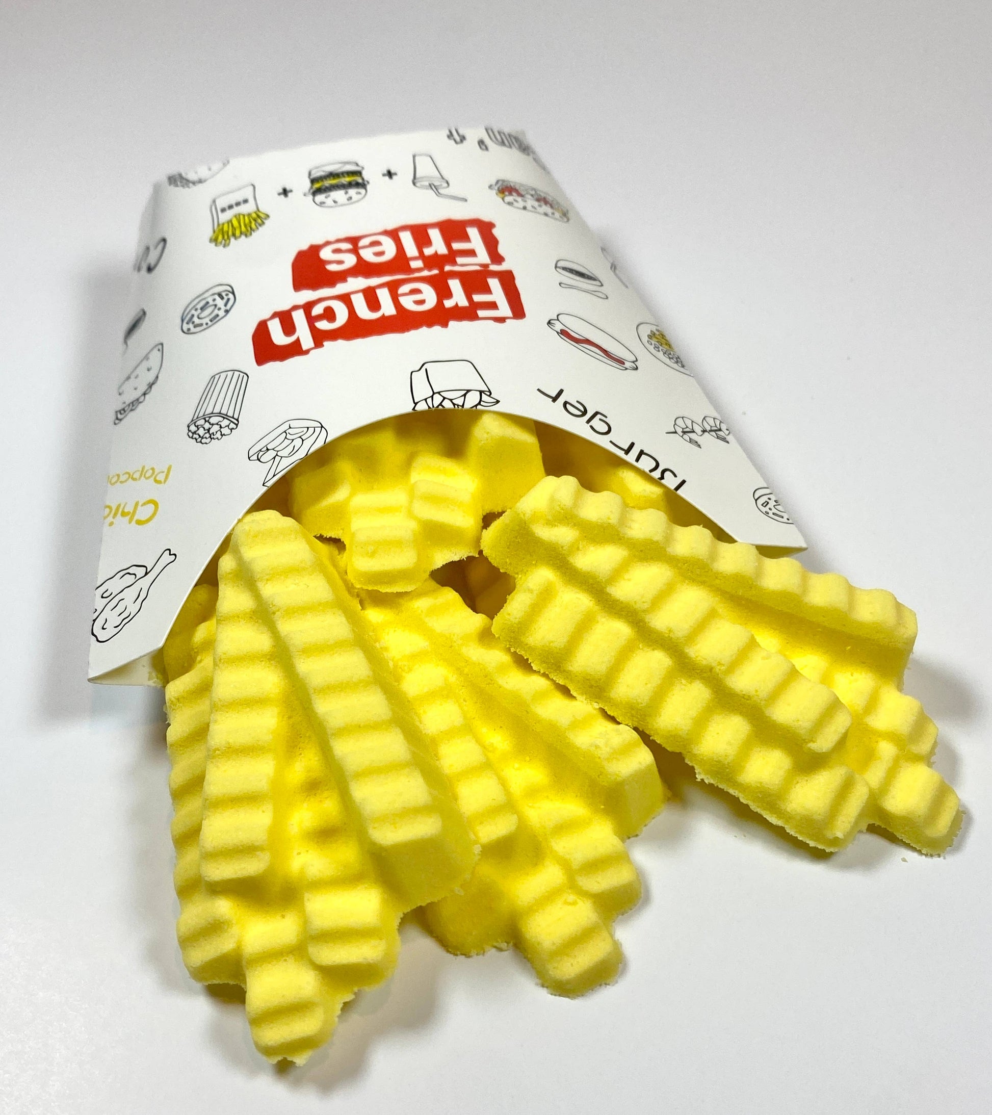 Each container contains 4 clusters of french fries. Package is a paper french fry container