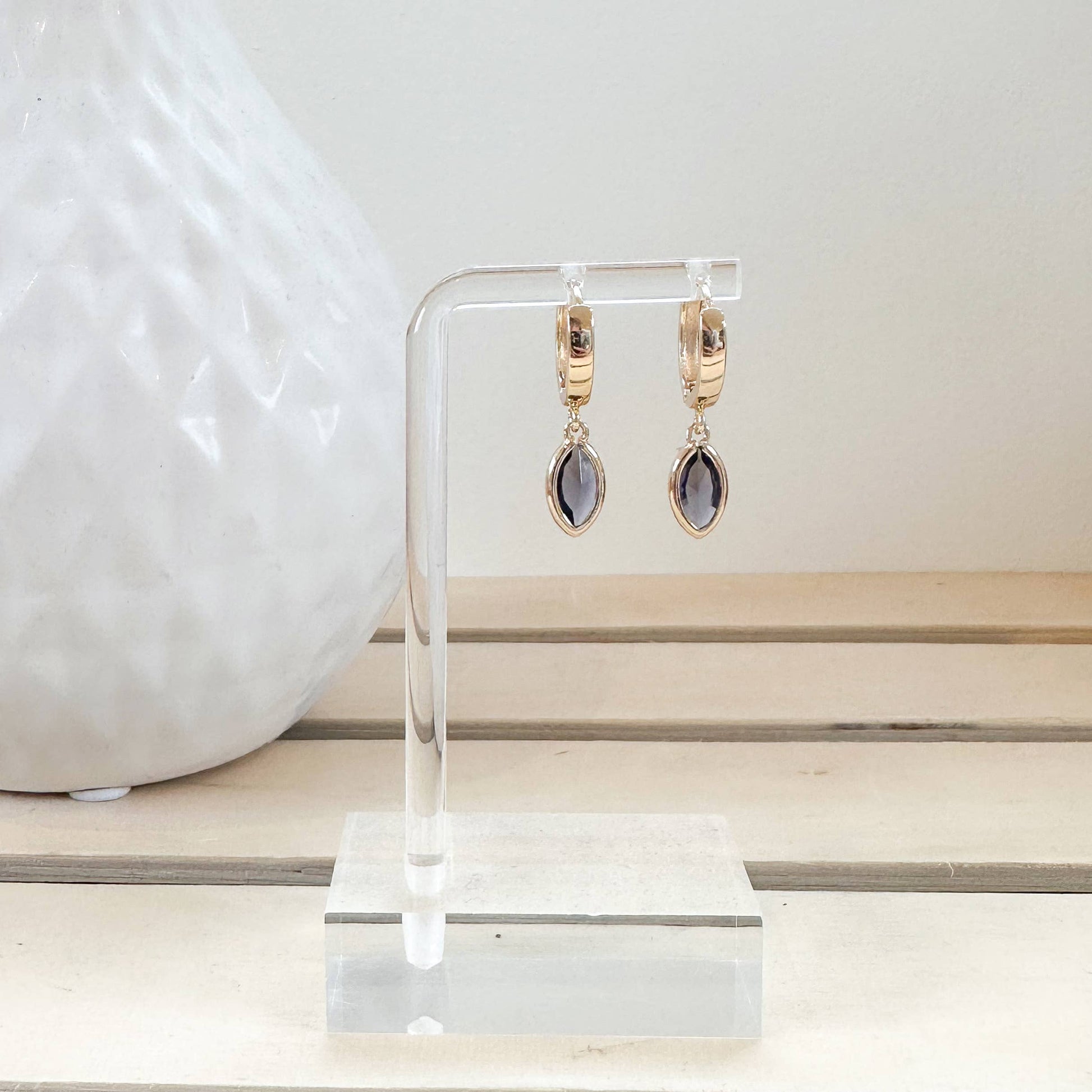 Gold Plated Huggie w/ Charm - Purple Crystal