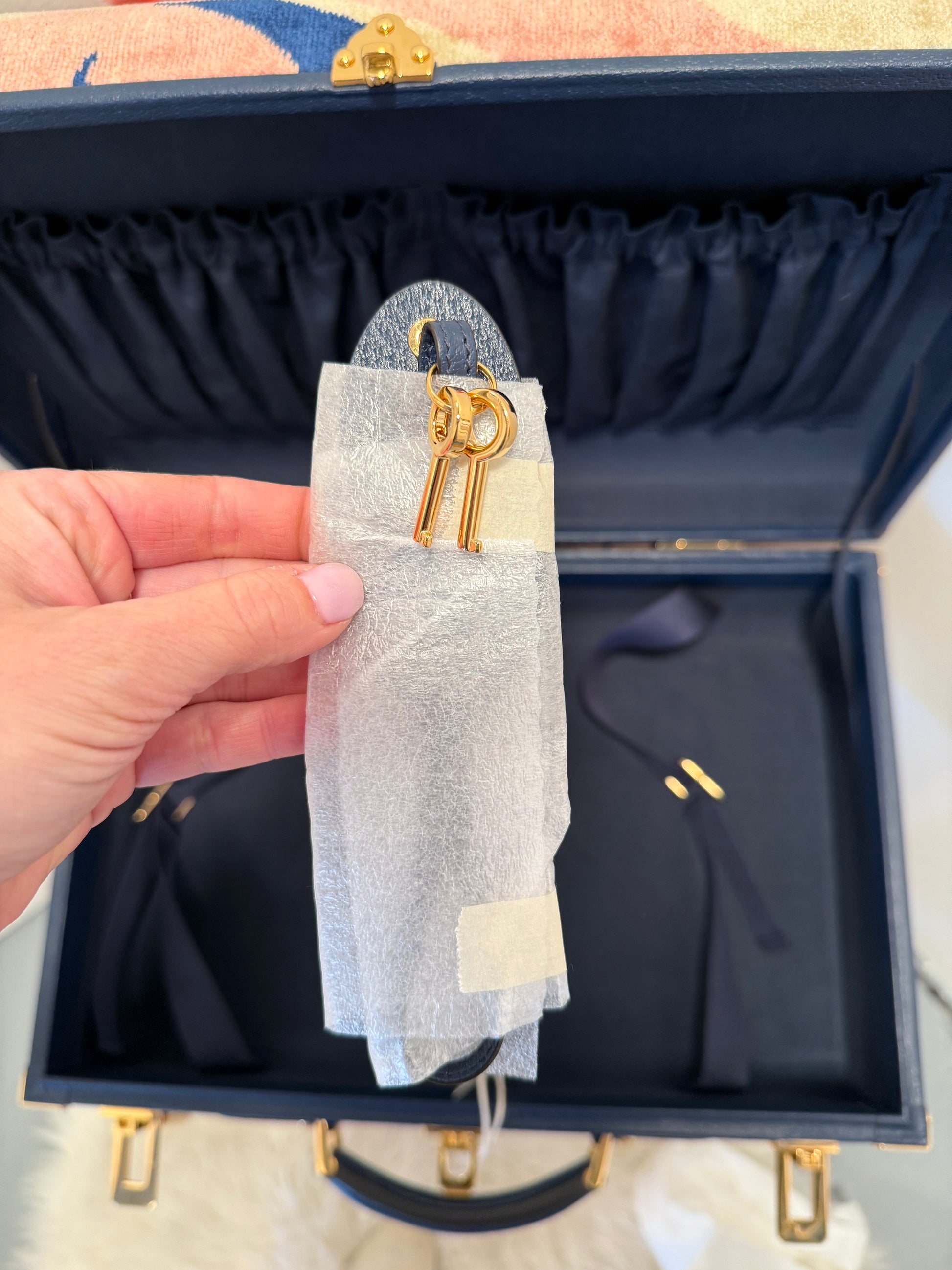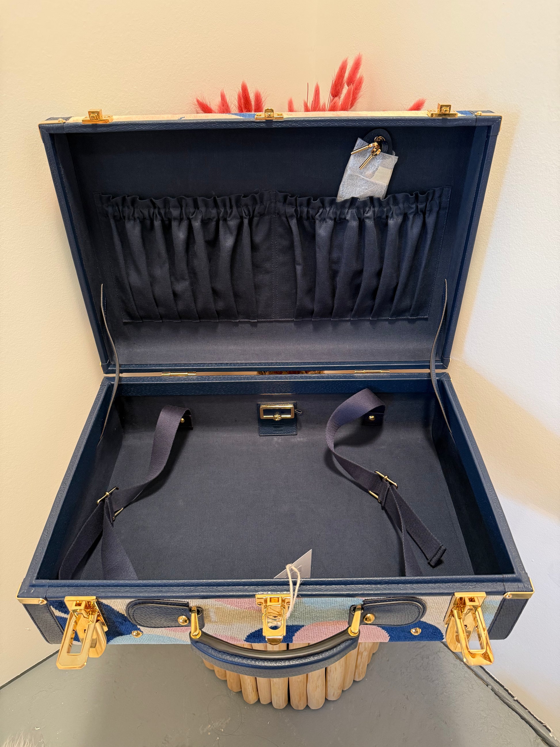 Limited Edition Velour/corduroy floral print luggage in pastel blue, pink and beige. Featuring a Navy leather trim.