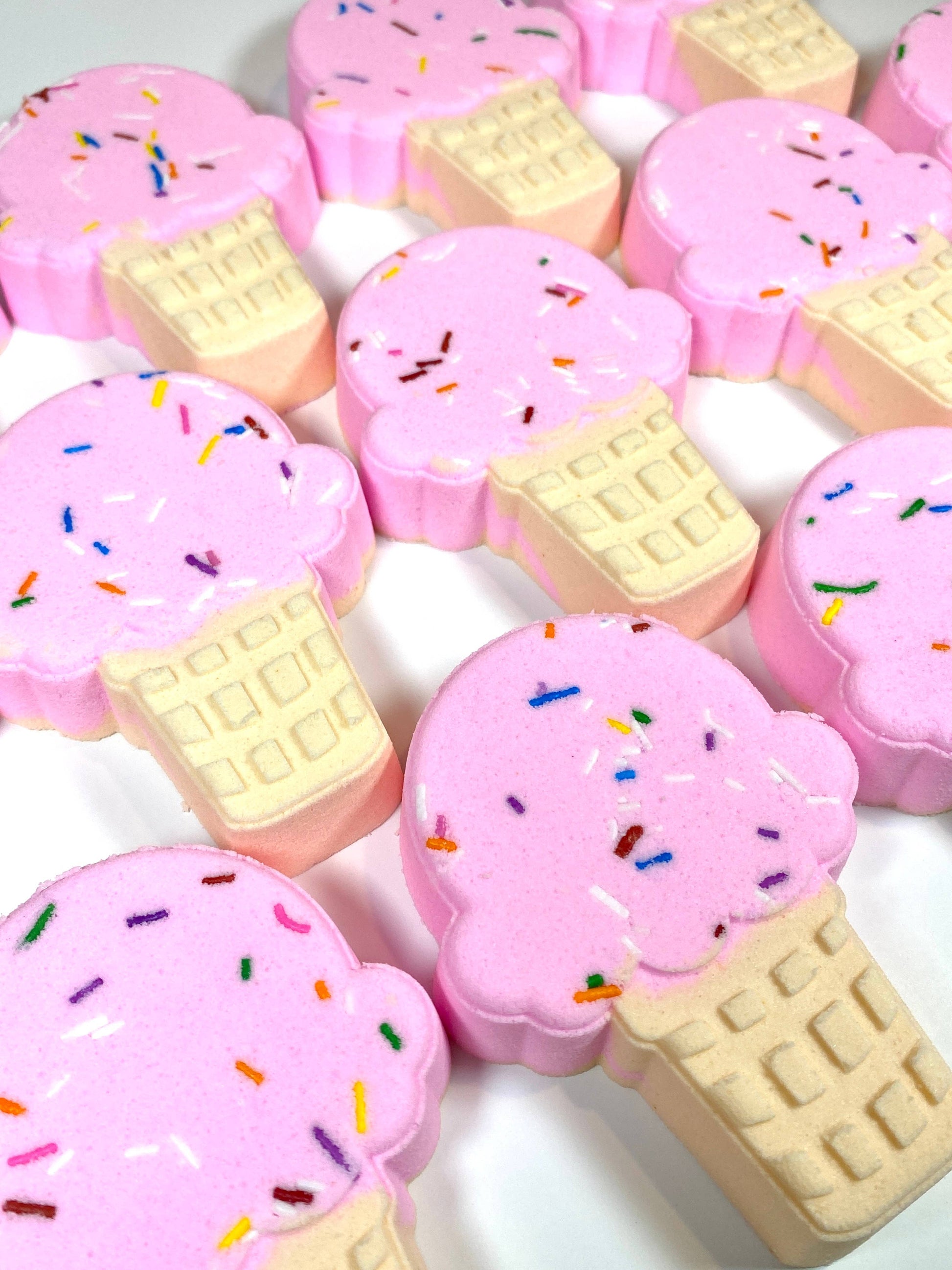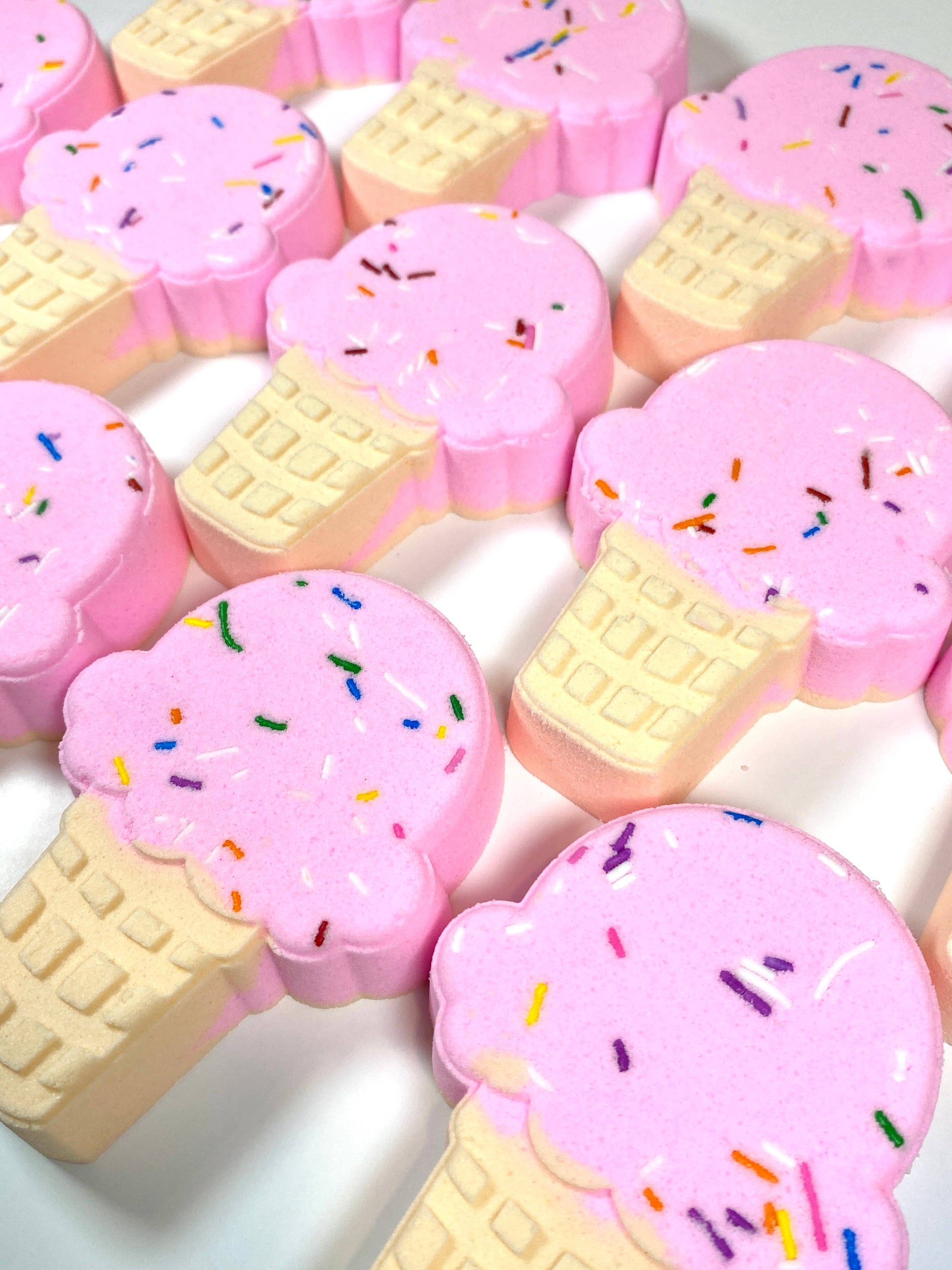 Introducing the Ice Cream Cone Bath Bomb, the sweetest way to unwind after a long day! Infused with a delightful marshmallow scent, this bath bomb is designed to bring a touch of whimsy and nostalgia to your bath time routine.