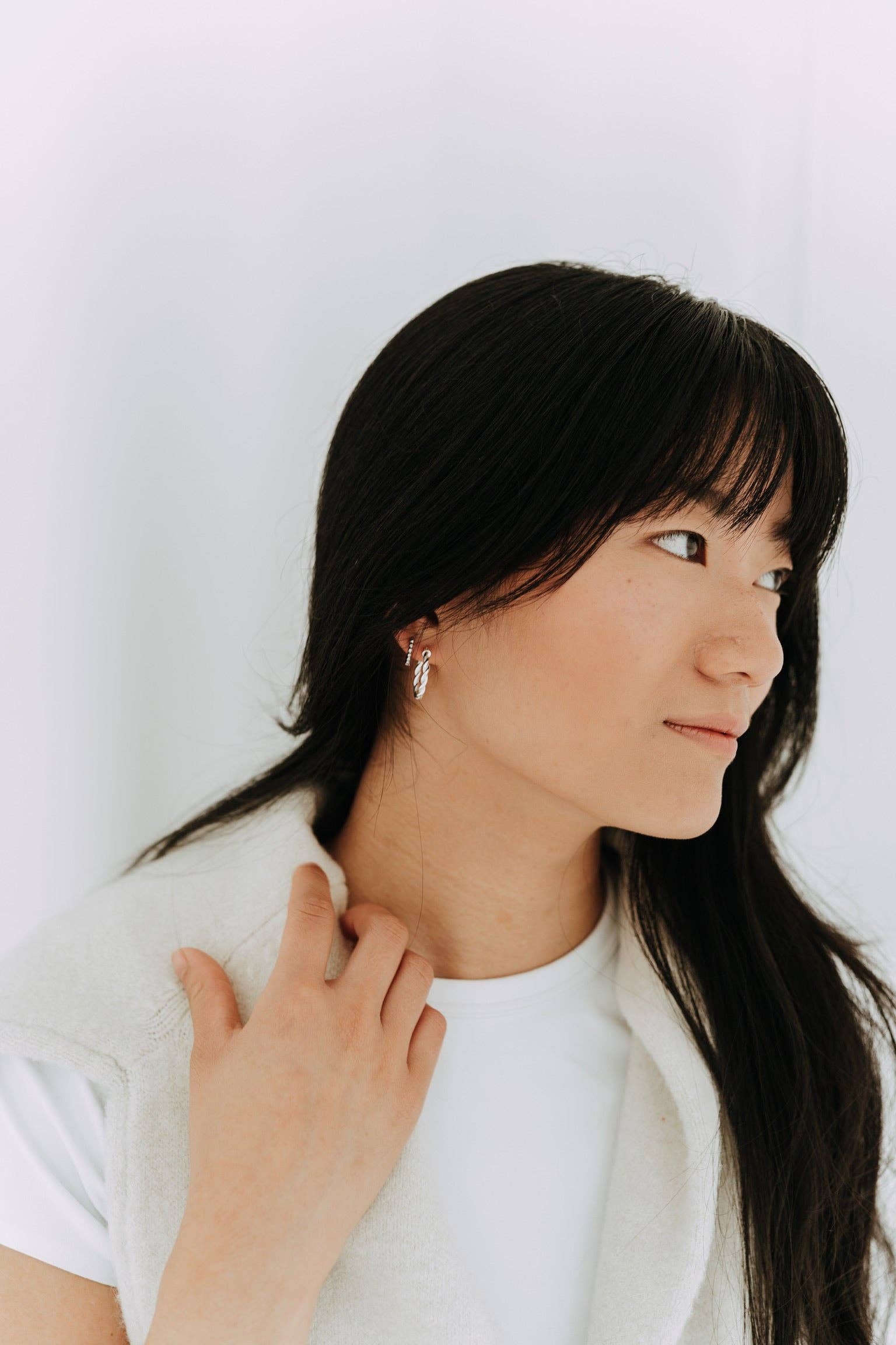 A modern twist on a timeless favorite. The Ivy Hoops feature a beautifully twisted design that catches the light from every angle — adding effortless shine and texture to your look. Crafted in solid sterling silver, these hoops strike the perfect balance between classic and contemporary.