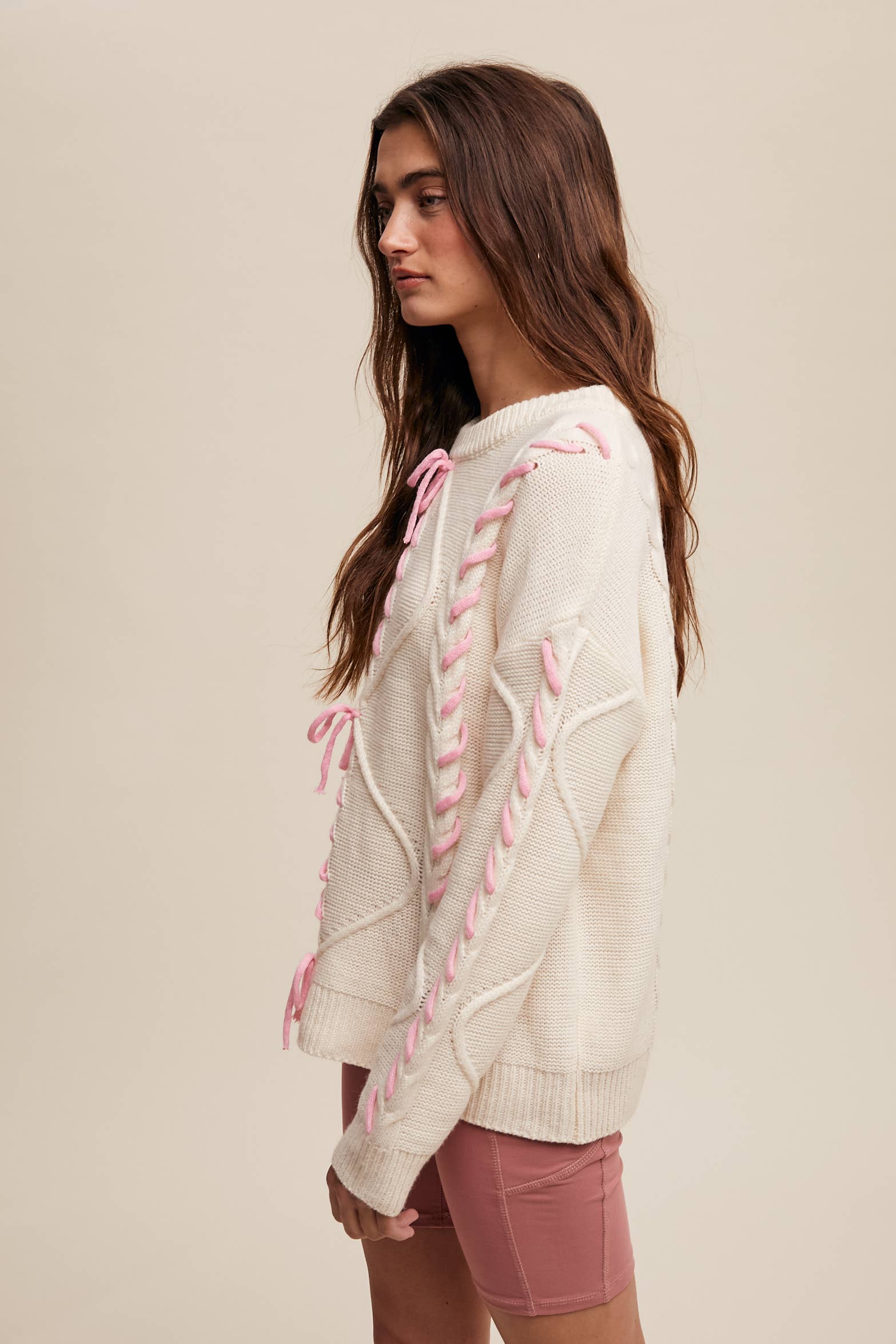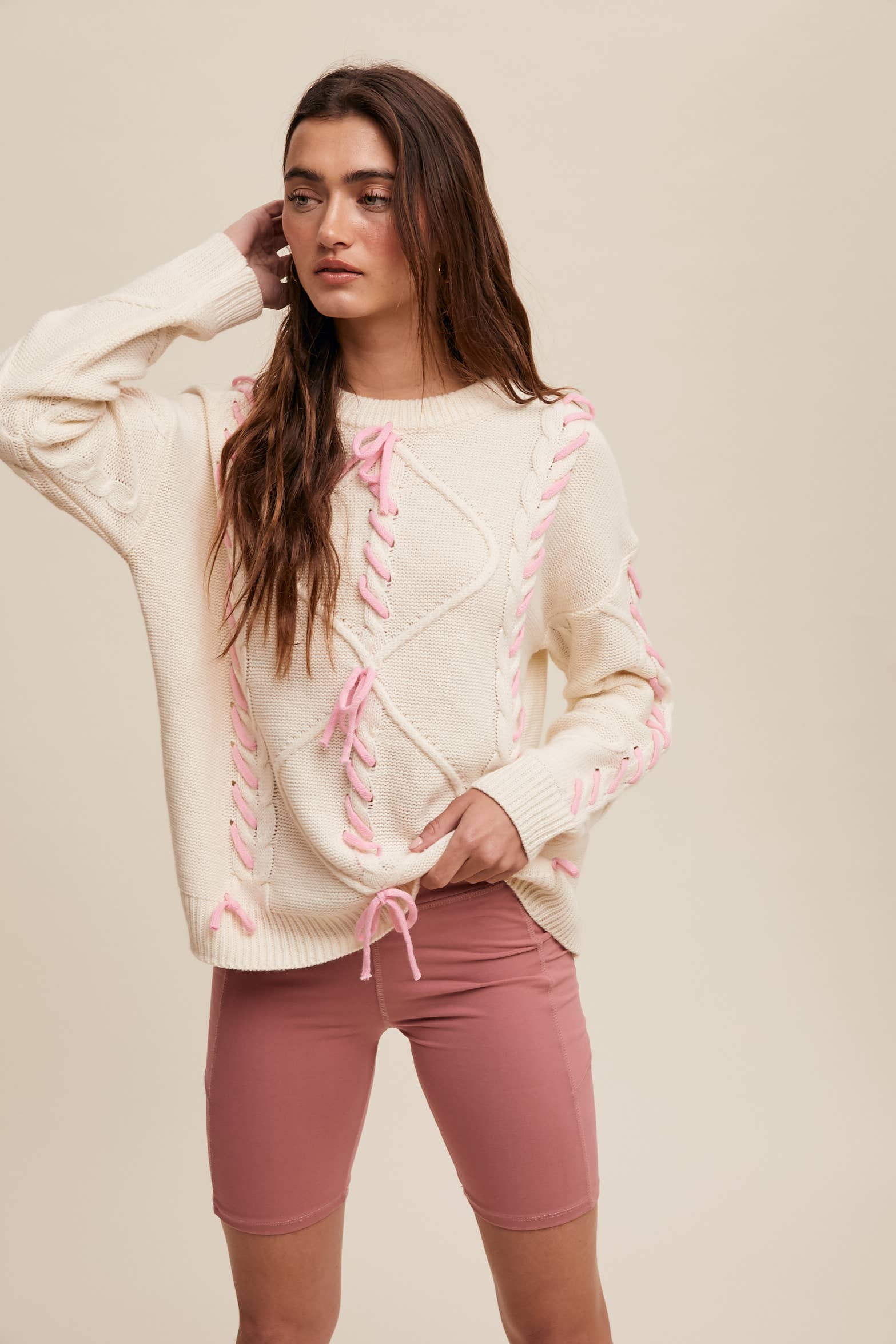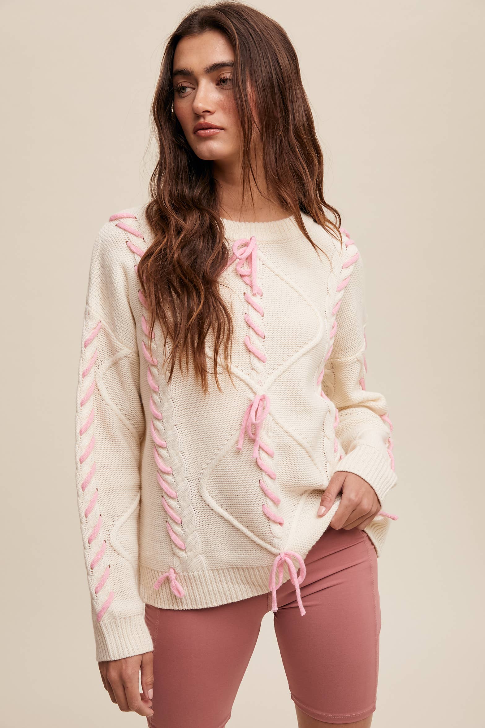 This playful update on the classic cable knit blends cozy comfort with statement-making detail, pairing effortlessly with denim skirts, wide-leg jeans, or layered over a boho midi dress for a Western-meets-modern twist.