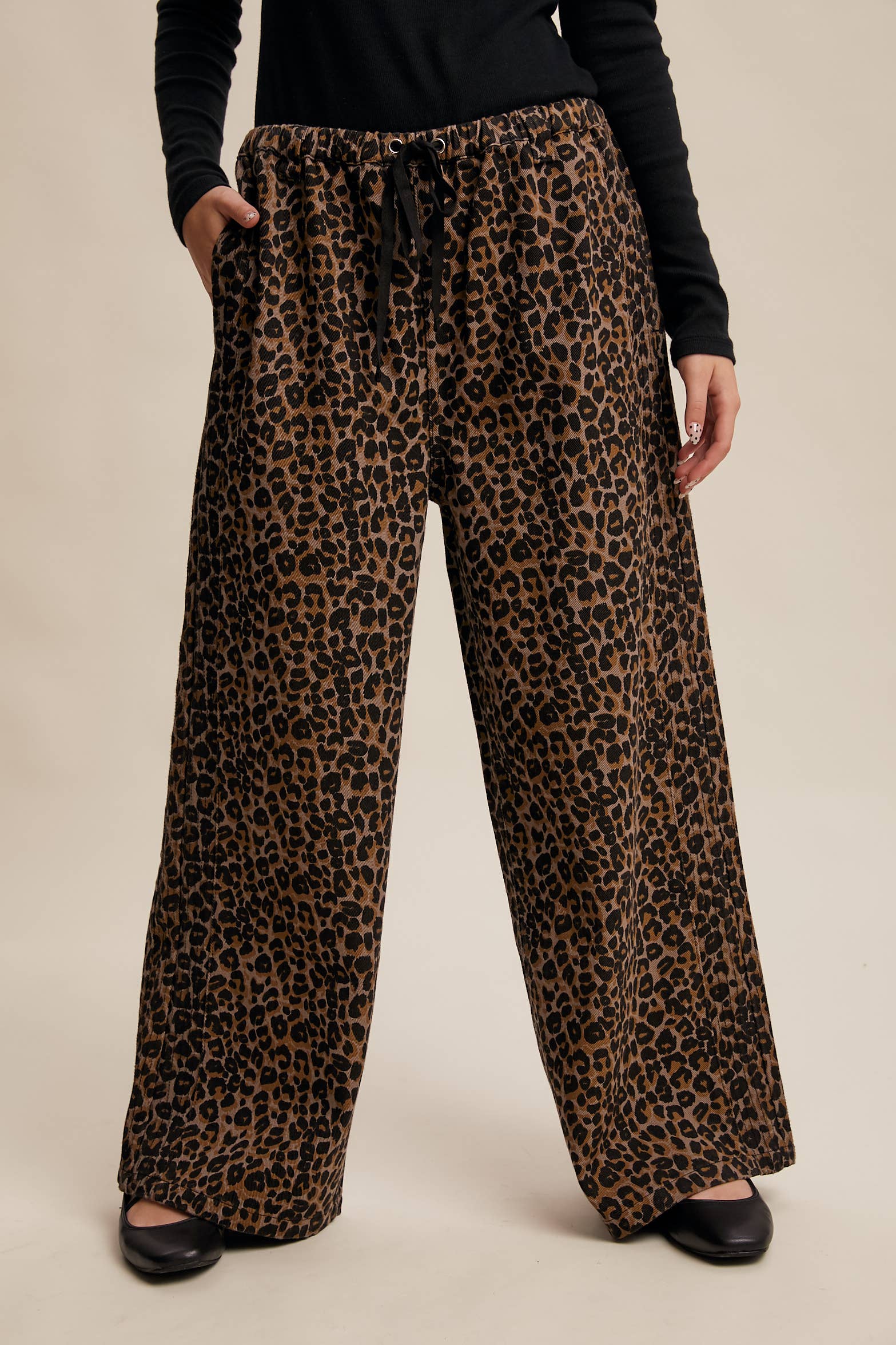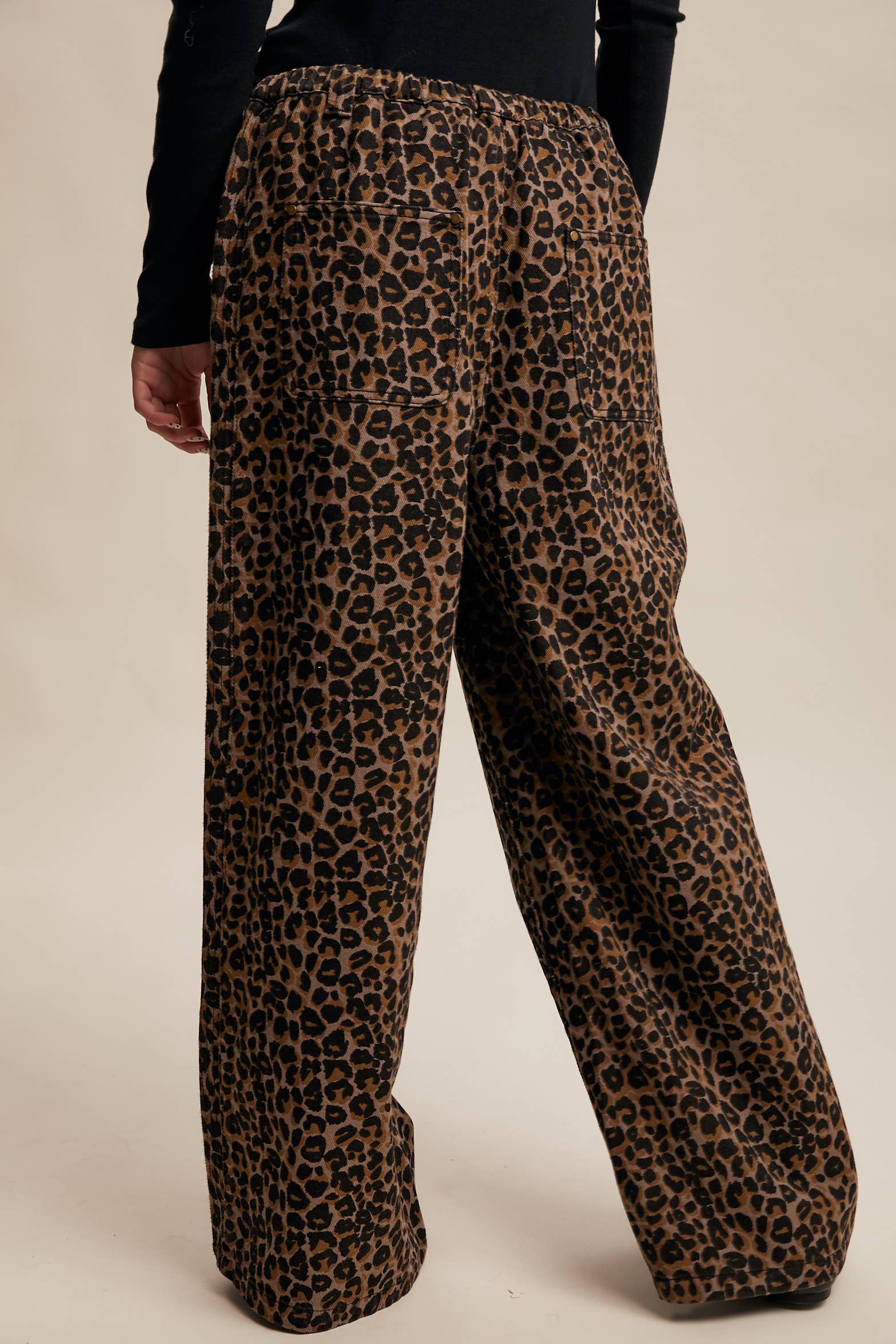 JANICE- Leopard Print Denim Wide-Leg Pants