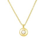 Discover the Pearl Gold Round Pendant Necklace featuring a freshwater pearl in a timeless gold design—elegant, durable, and perfect for everyday wear.