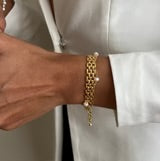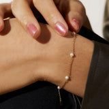 Elevate your style with our Pearl By The Yard Gold Bracelet, featuring lustrous pearls delicately spaced along a luxurious gold chain. This elegant piece combines timeless sophistication with modern simplicity, perfect for any occasion.