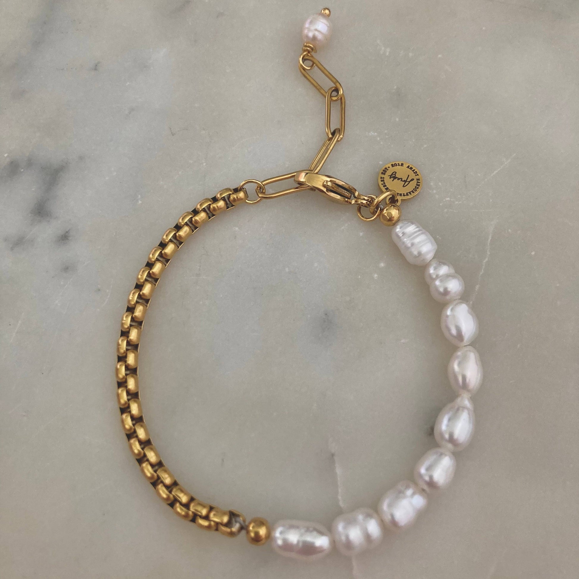 ★ Beautiful genuine Freshwater Pearls + 18k gold plated box chain Bracelet. The perfect amount of edginess and classic in just one piece.