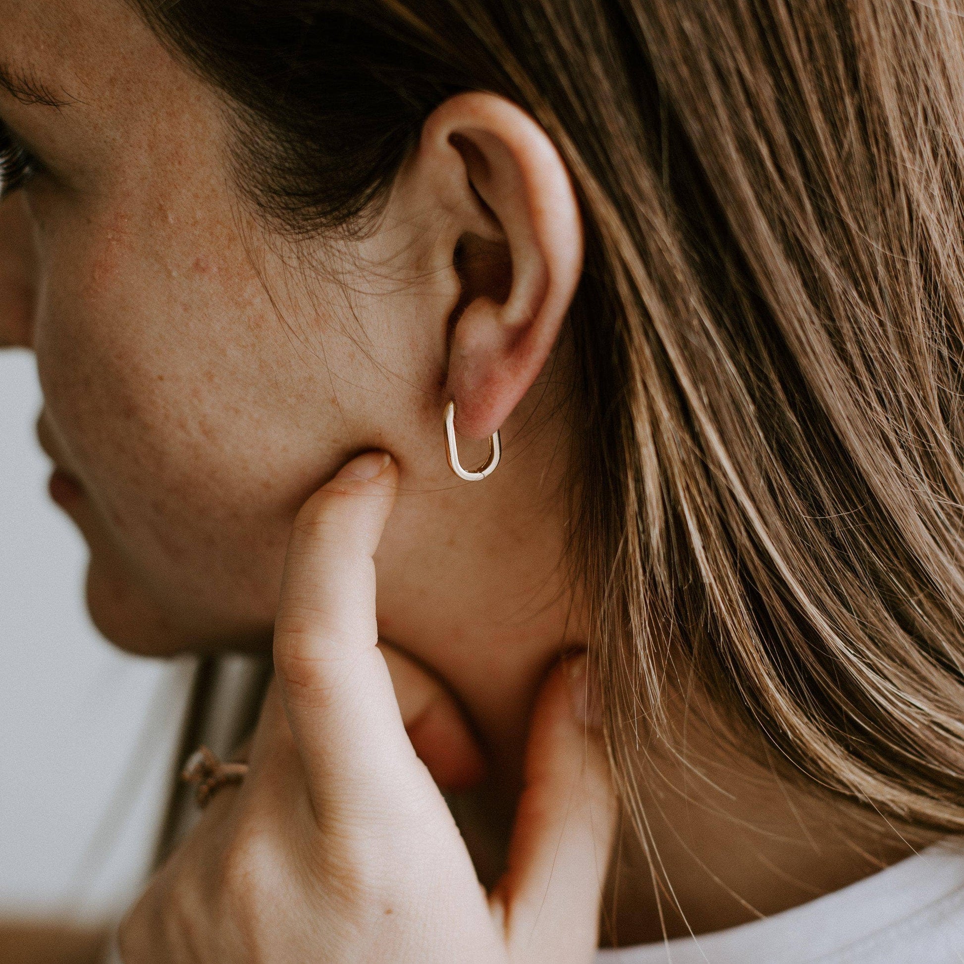 Simple, sleek, and effortlessly stylish, The Rectangle Huggie Hoops are the perfect accessory for any occasion. With their clean lines and modern design, these hoops offer a minimalist twist on the classic huggie style. Whether you’re dressing them up for a night out or keeping it casual for everyday wear, these versatile hoops are sure to elevate your look with ease. The Details - Size: 2mm x 10mm—small and subtle, these hoops provide the perfect balance of bold and understated. - Material: 18K Gold Filled—providing a luxurious gold finish with durability and lasting shine. - Hoop Style: Huggie design that sits snugly against the ear for a comfortable, secure fit. - Hypoallergenic: Nickel and lead-free, perfect for sensitive ears and everyday comfort. - Water + Tarnish Resistant: Designed to hold up to daily wear while maintaining its shine and sleek appearance. With their minimalist style and versatile design, Rectangle Huggie Hoops are an essential addition to your jewelry collection.