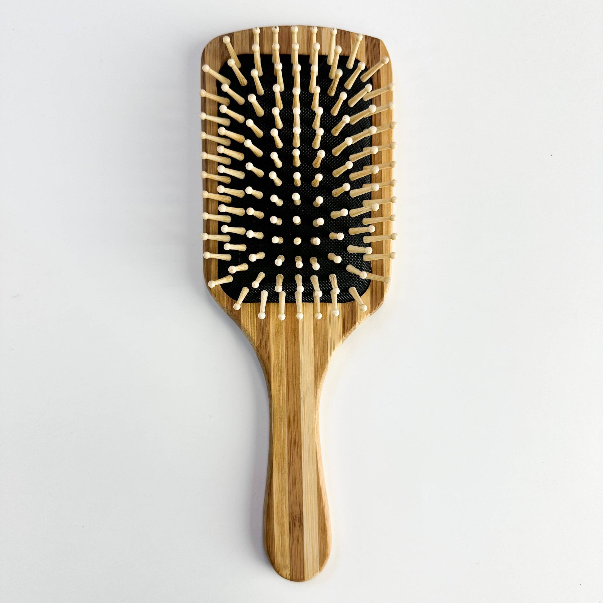Treat your hair to gentle care with our Eco-Friendly Bamboo Hairbrush. Crafted from sustainably sourced bamboo and designed with rounded wooden bristles, this brush helps reduce static, prevent breakage, and gently massage your scalp to promote healthy hair growth. It's the perfect natural alternative to plastic brushes — stylish, durable, and biodegradable.
