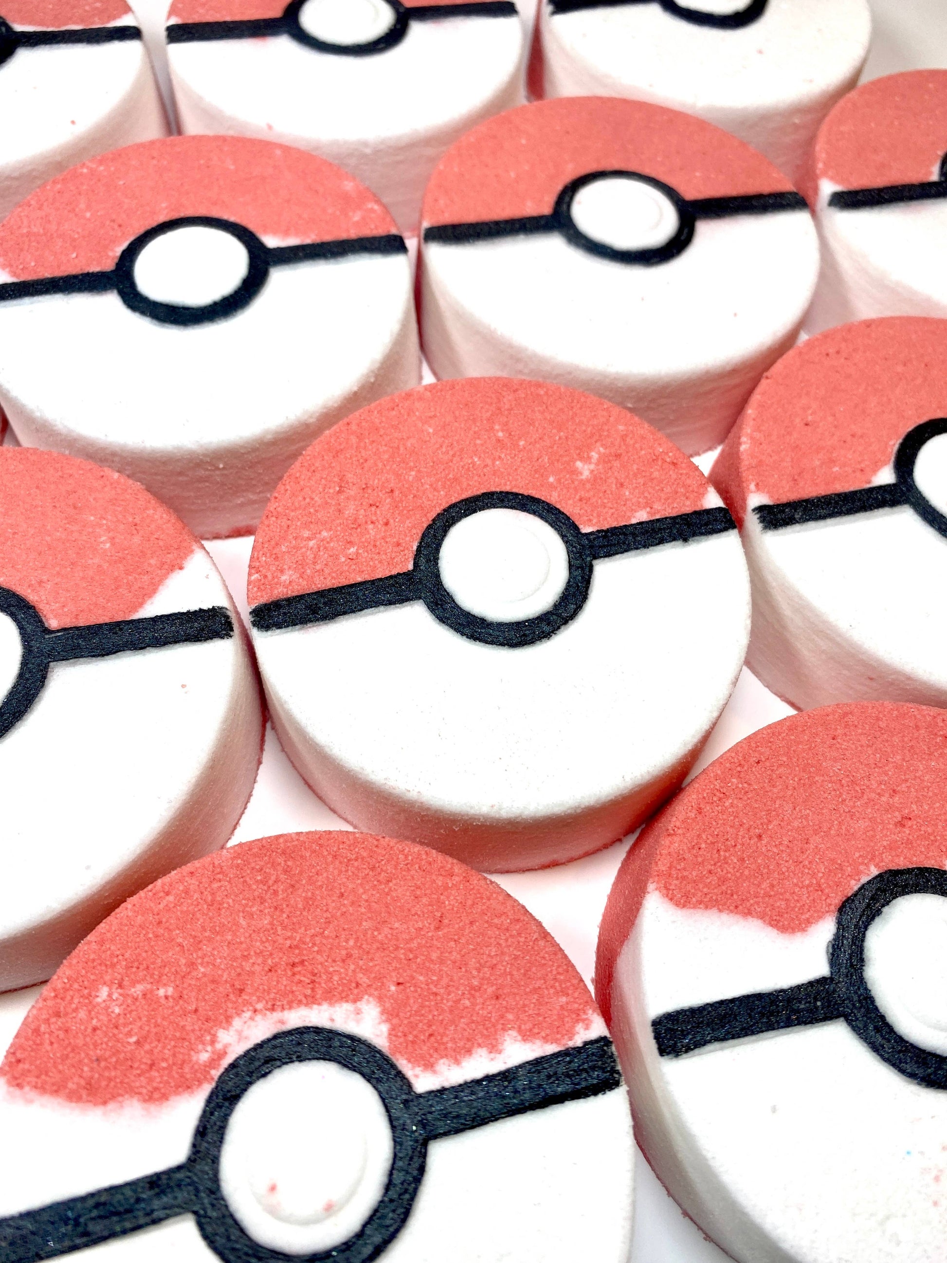 Each Pokeball has a Pokemon figurine hidden inside which appears when it starts to dissolve in a warm bath.