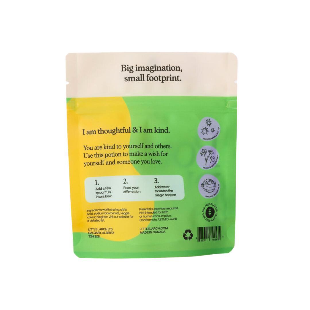 Potion Play is packaged in a stand up pouch with a resealable zipper, making it easy to store and make multiple potions! Our pouches are made from recycled plastic and are fully recyclable.