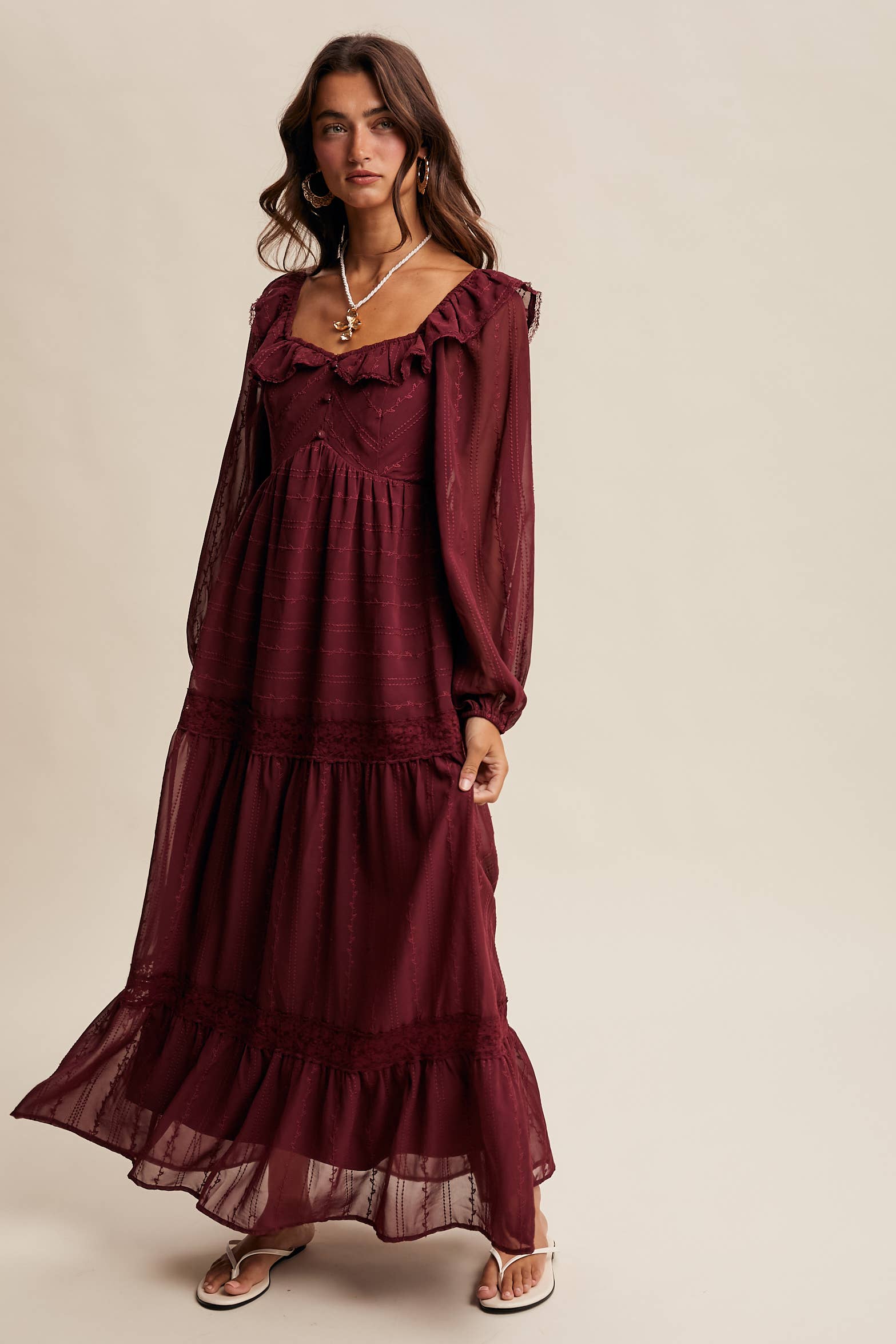 ABIGAIL- Ruffle Trim Tiered Maxi Dress