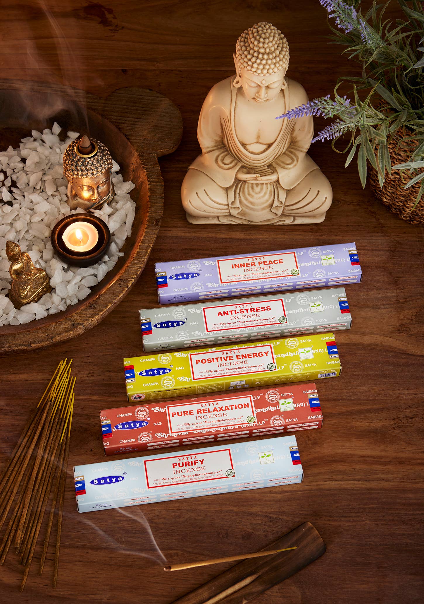 Satya Mindfulness Incense in 10 inspiring fragrances Designed by and manufactured exclusively for Namaste Mindfulness Series masala incense sticks made using the best natural ingredients and essential oils. Each hand rolled bamboo stick burns for over an hour. Burn in preparation for meaningful, healing meditation or enjoy as a room scent to encourage relaxation. Use caution when burning incense. Never touch once lit. Place your holder/burner on a heat resistant surface. Catch falling ashes as they may discolour surfaces. Position away from anything flammable and open windows or other draughts. Keep both unlit and burning incense out of the reach of children and pets. Never leave burning incense unattended. If in doubt, extinguish safely.