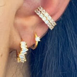 The Single Stone Huggie Earring combines simplicity with elegance, featuring a single sparkling stone set in a sleek, curved huggie design. Perfect for everyday wear or special occasions, this earring adds a touch of subtle sophistication to any look.