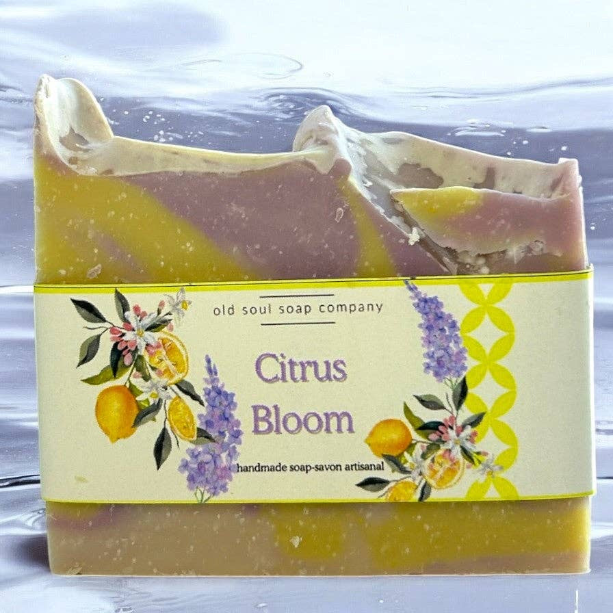 Citrus Bloom: Say goodbye to dull and hello to fresh with our Citrus Bloom Soap. Ingredients: Cocos Nucifera (Coconut) oil, Helianthus Annuus (Sunflower) Seed Oil, Canola Oil, Aqua, Olea Europaea (Olive) oil, Sodium Hydroxide, Fragrance Oils.
