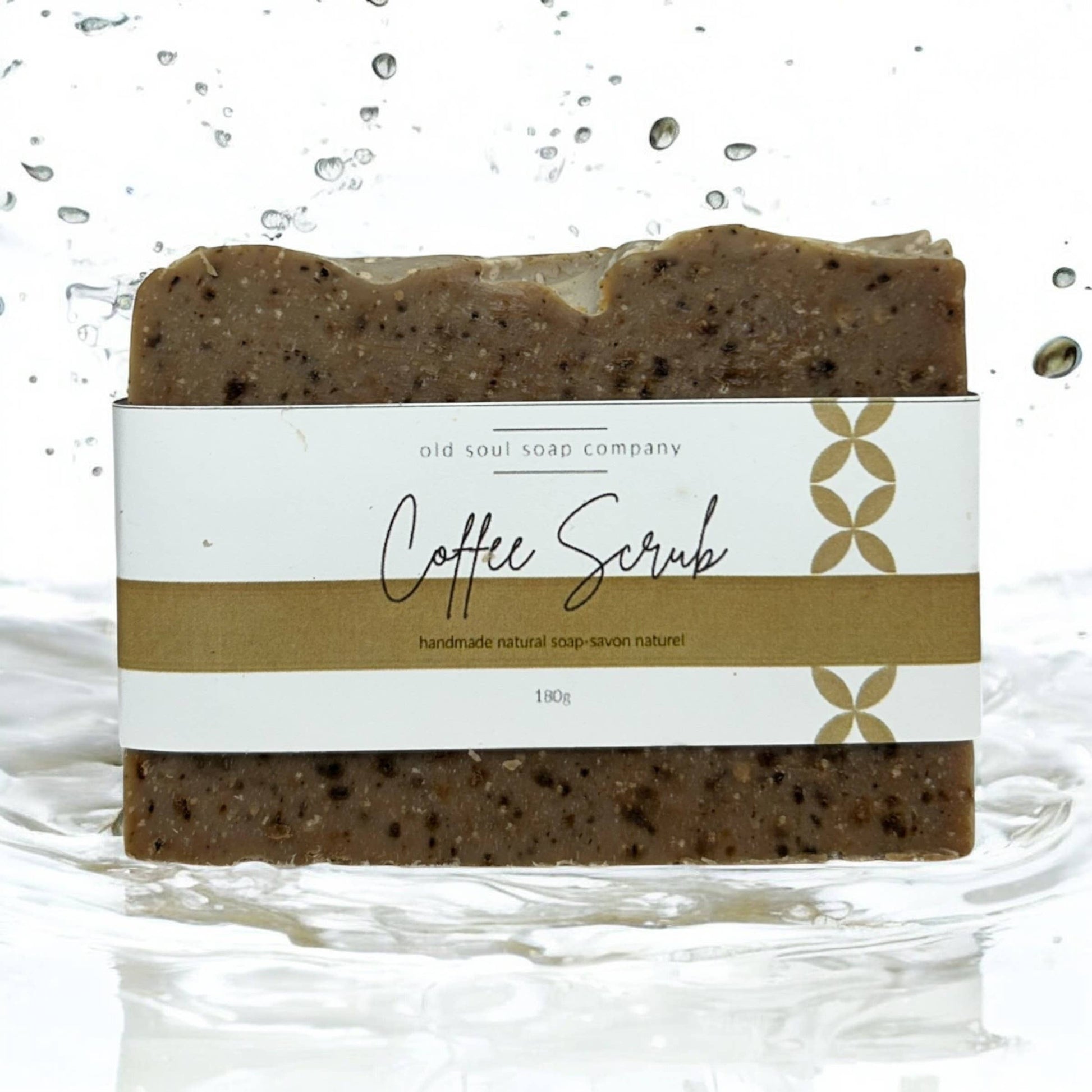 Coffee Scrub: A must have by the kitchen sink...triple brewed coffee and a spicy blend of essential oils enhanced with fresh ground coffee. This bar will clean and deodorize your hands getting rid of odors such as garlic and onion. Caffeine is good for your skin so don't forget to try it in the shower too...!! Ingredients: Cocos Nucifera (Coconut) oil, Helianthus Annuus (Sunflower) Seed Oil, Canola Oil, Aqua, Olea Europaea (Olive) oil, Sodium Hydroxide, Eugenia Caryphyllus (Clove) Flower oil, Citrus Aurantium Dulcis (Orange) peel oil, Vanilla oil, Coffee Grinds