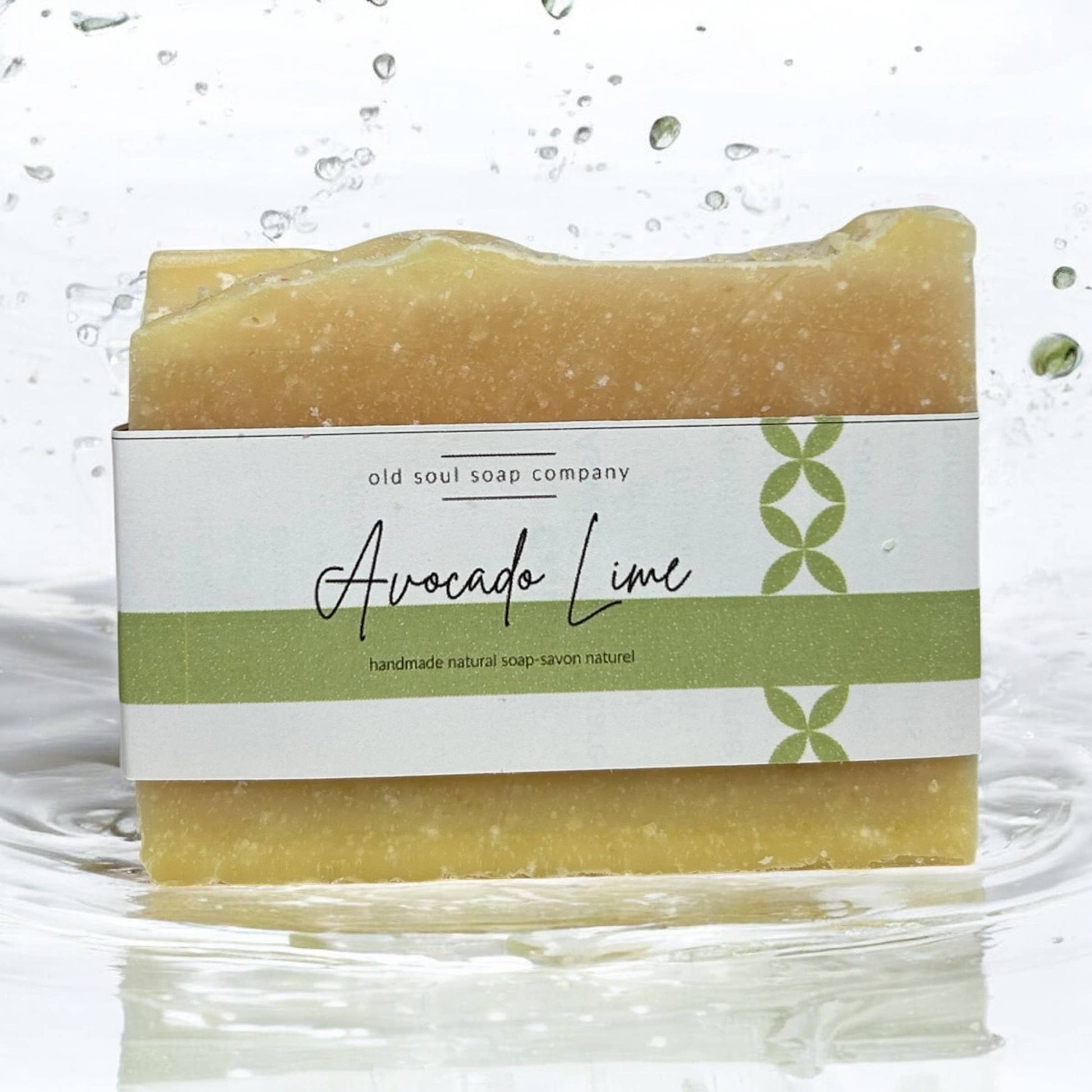 Avocado Lime: Pureed avocado makes this soap our most moisturizing. A Lime, Litsea and Lemongrass essential oil blend will leave you feeling refreshed and fabulous. Ingredients: Cocos Nucifera (Coconut) oil, Helianthus Annuus (Sunflower) Seed Oil, Canola Oil, Aqua, Olea Europaea (Olive) oil, Sodium Hydroxide, Avodcado fruit, Citrus Aurantifolia (lime) oil, Cymbopogon schoenanthus (lemongrass) oil, Litsea cubeba fruit oil