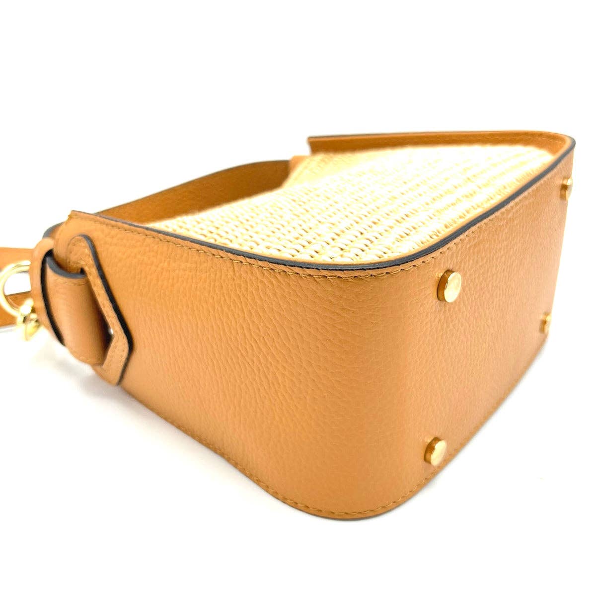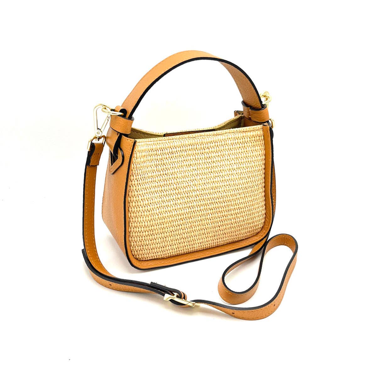 Size(cm): 17*20*10, Small size * Detachable and adjustable crossbody strap * Composition: Genuine Leather and straw * Made in Italy